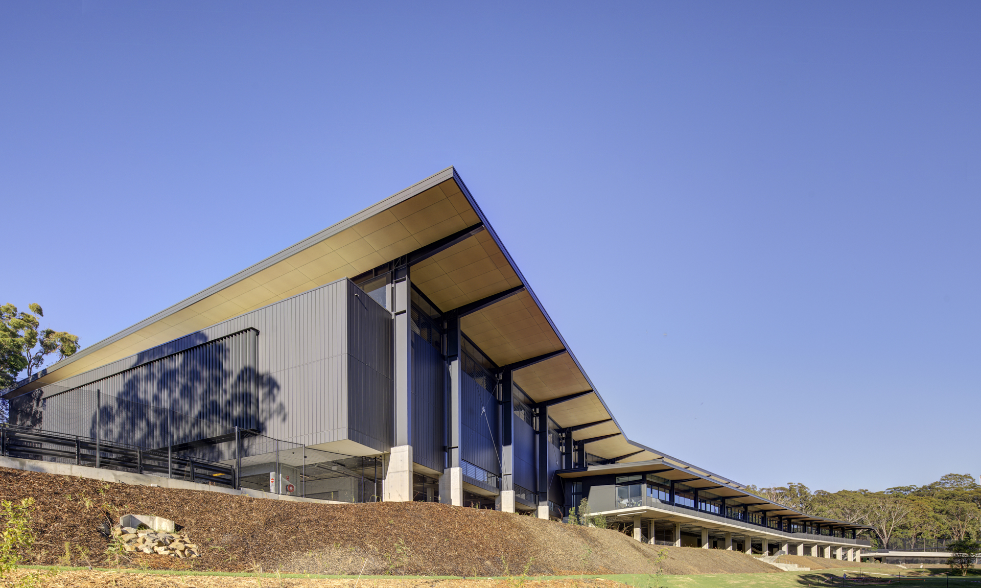 Located at the existing Lane Cove Golf Course, the new facility brings much needed sporting and function facilities to the lower North Shore area. The project includes 4 indoor multi-purpose sports courts, 4 multi-sport outdoor courts, bistro and dining areas, multi-purpose function rooms, a golf pro shop and convenient on-grade and undercroft parking.