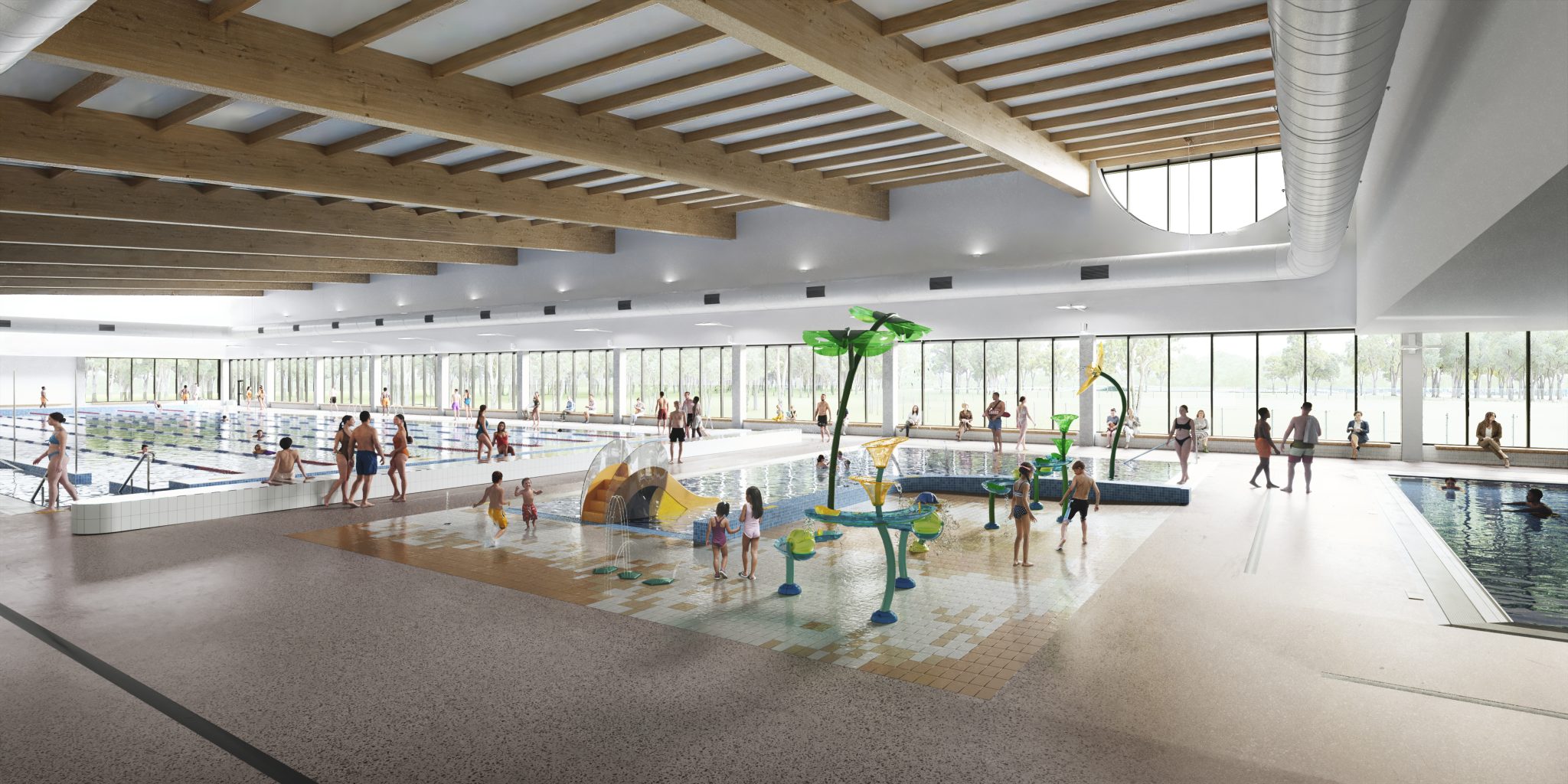 Key features of the new centre include 4 pools: a 50m multi-purpose lap swimming pool, learn-to-swim pool, warm water exercise pool, and leisure pool; wellness facilities: spa, sauna, and steam room for relaxation and recovery; gym and fitness areas: state-of-the-art facilities to support an active lifestyle; café: a vibrant space for socialising and refreshments and ancillary services: modern foyer, change village, and ample car parking.